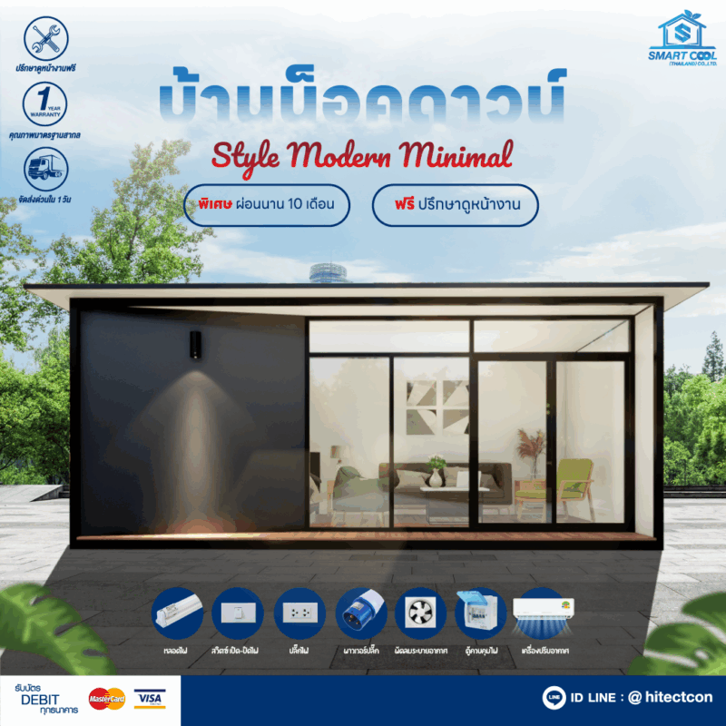 ขนาดเริ่มต้น 3*3 เมตร สูง 3.40 เมตร ราคาเริ่มต้น 169,999 บาท